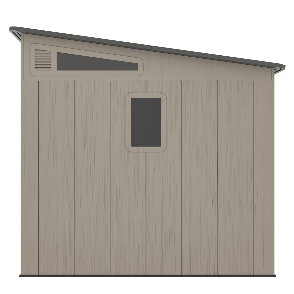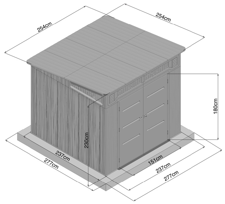 Součástí domku je pevná plastová podlaha, která chrání interiér před vlhkostí, vodou a blátem a umožňuje bezpečné uložení i těžších strojů a nářadí. O zdravé vnitřní klima se stará ventilační systém na dvou stranách, větrací otvory jsou navíc vybaveny sítí proti hmyzu, která zajišťuje účinné větrání bez nežádoucích návštěvníků.